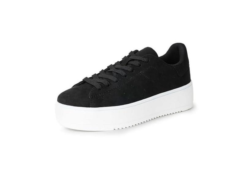 J. Adams Hero Platform Tênis feminino casual com cadarço moderno, Camurça vegana preta, 37