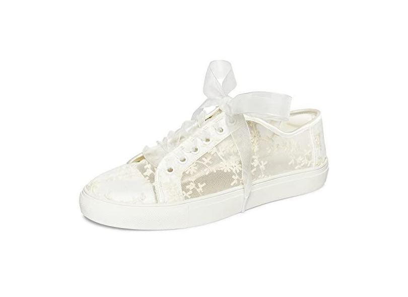 JIAJIA 8835 Sapatos de casamento, sapatos de noiva, sapatilhas, tênis de renda, Marfim, 34