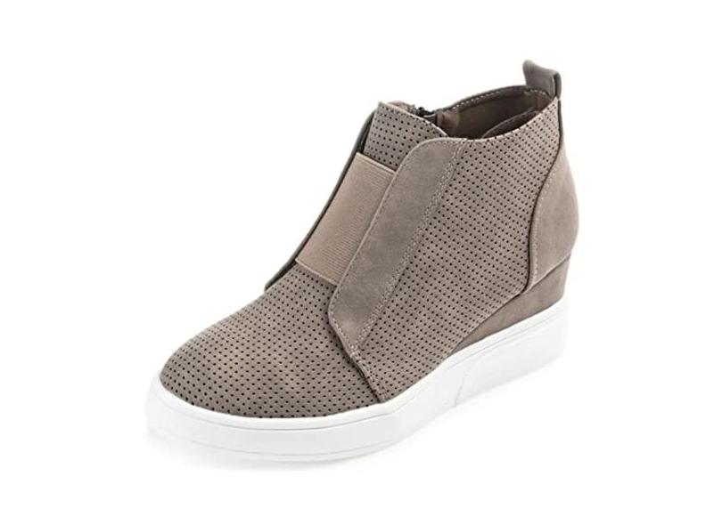 Journee Collection Womens Clara Comfort Wedge Heel Sneakers with Round-Toe and Perforated Details, Taupe, 6.5