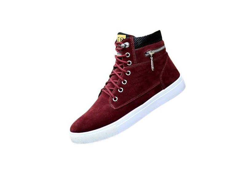 Jueshanzj Sapatos de lona masculinos sapatos casuais sapatos de cano alto, Vinho tinto, 39