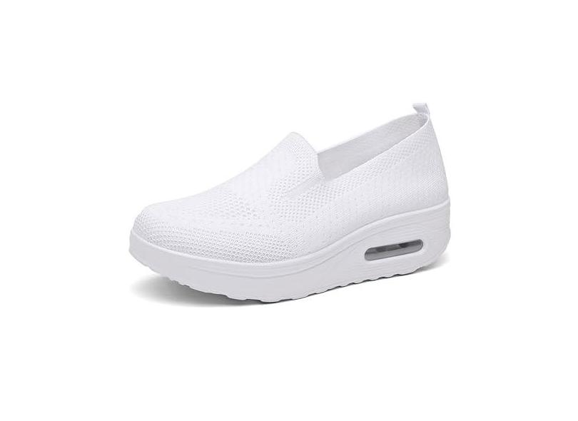 Jueshanzj Tênis feminino de malha respirável com fundo grosso, Branco, 37