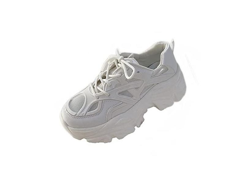 Julymens Tênis feminino plataforma grosso com cadarço moderno salto cunha preto, Branco, 37