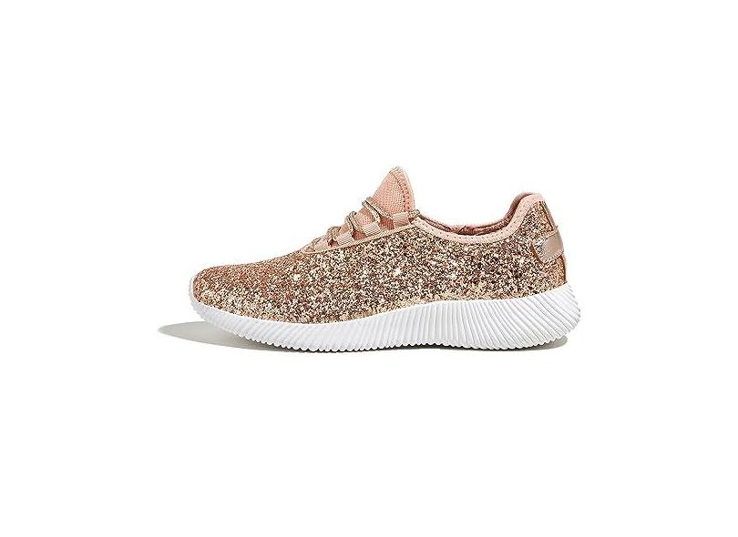 K KIP WOK Tênis de corrida feminino com glitter moderno Silp On Lightweigt Tênis de caminhada, Ouro rosa, 38