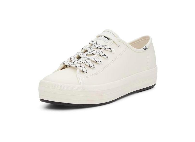 Keds Tênis feminino de couro Triple Kick, Faixa Foxing na parte inferior branca/preta, 36