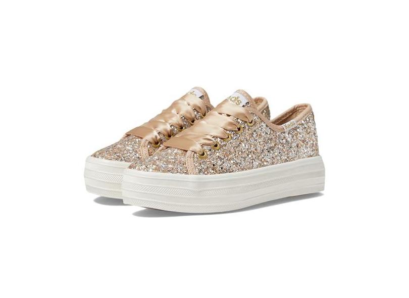 Keds Tênis feminino Triple Up Glitter Celebrations (criança pequena), Glitter champanhe, 14