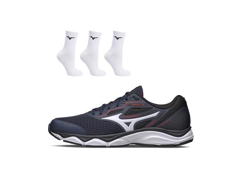 Kit 1 Tênis De Corrida Masculino Mizuno Hawk 4 E 3 Pares De Meia Cano