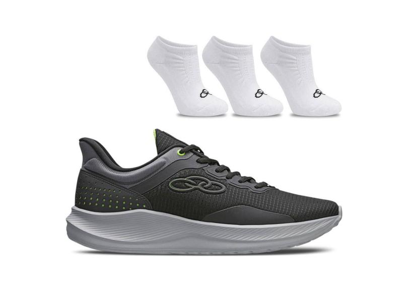 Kit 1 Tênis Masculino Zex Olympikus e Meia Cano Invisível - pacote com 3 Pares