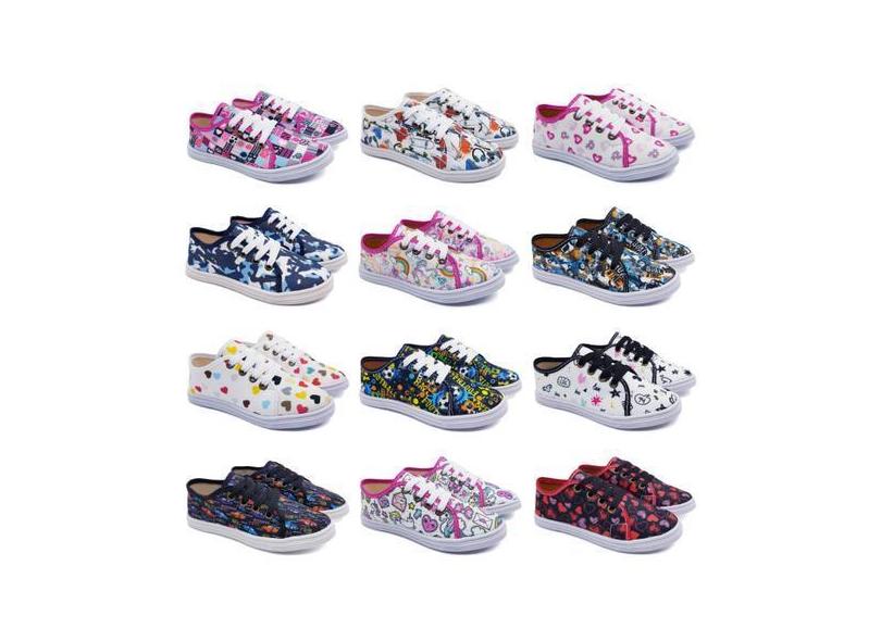 O menor preço encontrado no Brasil para Kit 12 Pares Tênis Desenho Infantil Menina Menino Atacado K80 - FABRIC atualmente é R$ 348,66.