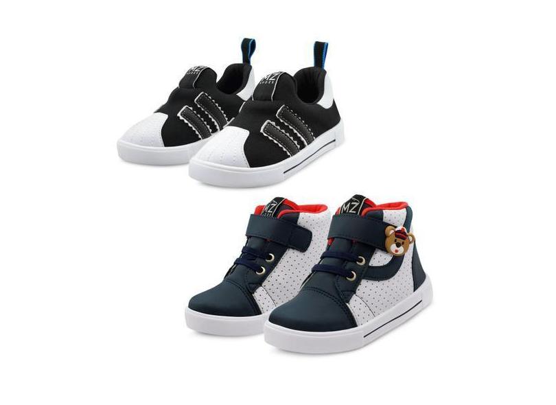 Kit 2 Pares De Tênis Infantil Menino Confortável Ursinho Marinho/Preto