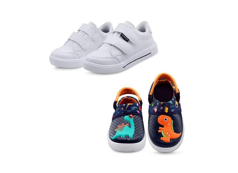 O menor preço encontrado no Brasil para Kit 2 Pares De Tênis Infantil Menino Escolar Branco E Sandália Babuche atualmente é R$ 129,80.
