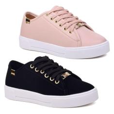 Kit 2 Pares Tênis Casual Feminino Sola Alta Flatform Liso Básico - Lei