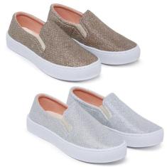 Kit 2 Pares Tênis Casual Slip On Iate Com Glitter Macio E Confortável