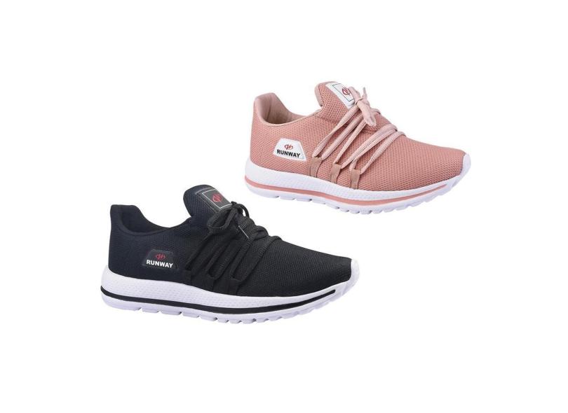 O menor preço encontrado no Brasil para Kit 2 Pares Tênis De Caminhada Corrida Runway Soft Feminino-Feminino atualmente é R$ 178,93.