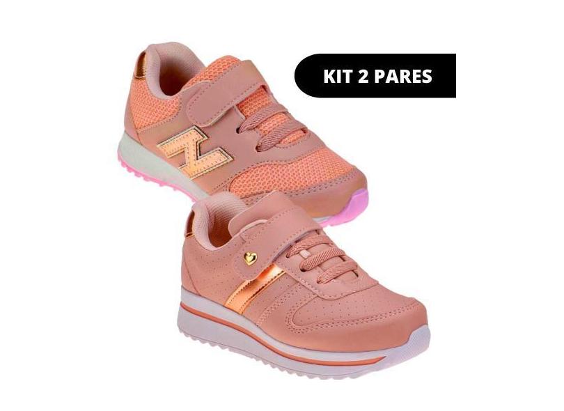 Kit 2 Pares Tênis Escolar Infantil de Menina - Club Happy, 34, Única