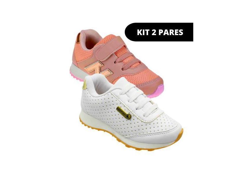 Kit 2 Pares Tênis Escolar Infantil Feminino Menina - Club Happy, 24, Ú