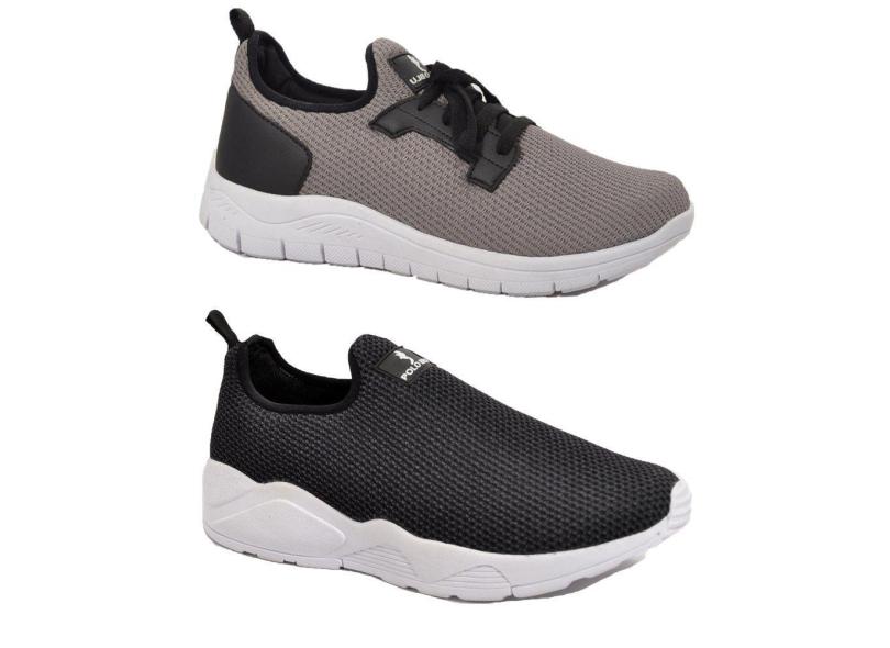 Kit 2 Pares Tenis Esporte Fitnes Top Franca Shoes Cinza / Preto