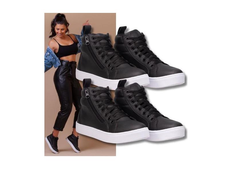 Kit 2 Pares Tenis Feminino Cano Longo Com Sola Anti-Derrapante. O Dobr