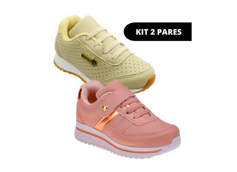 Kit 2 Pares Tênis Infanti de Menina Escolar - Club Happy, 33, Única