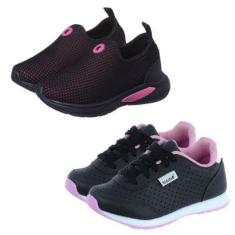KIT 2 PARES Tenis Infantil Calce Facil Menina Pink K Telinha e Escolar Rosa Kidstep-Feminino
