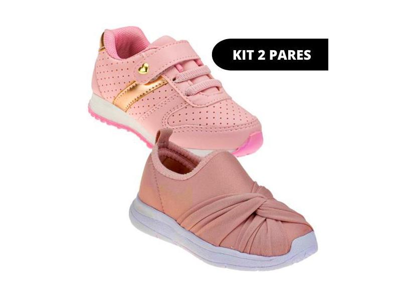 Kit 2 Pares Tênis Infantil Feminino Casual e Escolar - Club Happy, 27,