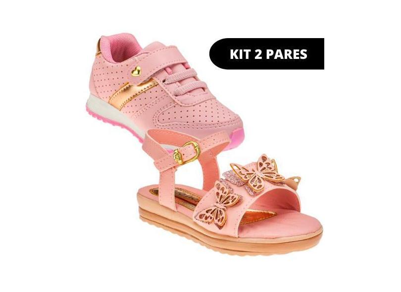 Kit 2 Pares Tênis Infantil Feminino e Sapatilha Casual e Escolar - Clu