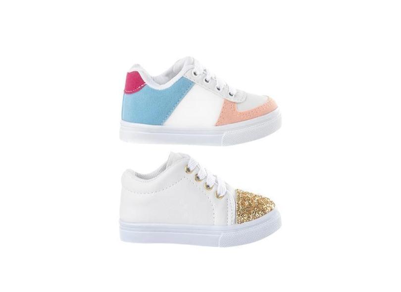 Kit 2 Pares Tenis Infantil Feminino Escolar Sapatenis Funfy, Branco, 2