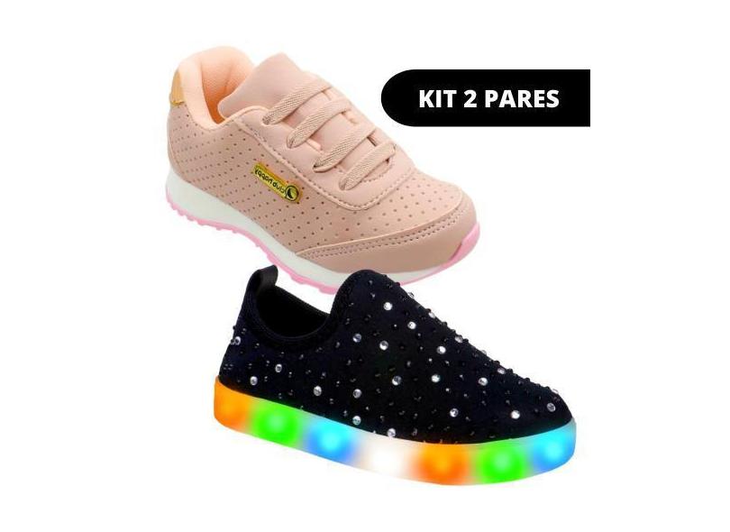 Kit 2 Pares Tênis Led Menina Infantil Feminino Escolar - Club Happy, 3