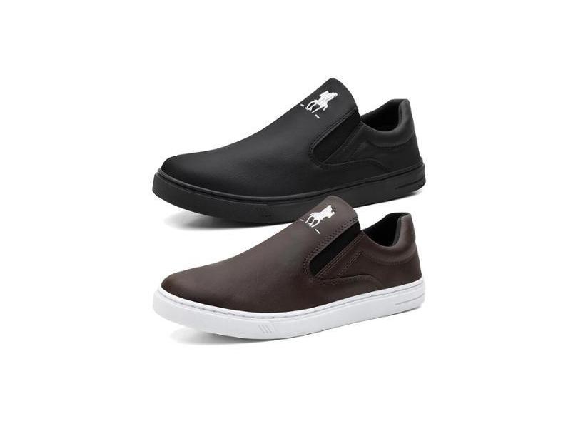 Kit 2 Pares Tênis Slip On Casual Menino com Elástico e Sola Reta Costurada-Masculino