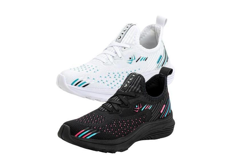 Kit 2 Pares Tênis Vili Feminino para Caminhada Academia, 37, Pretopink