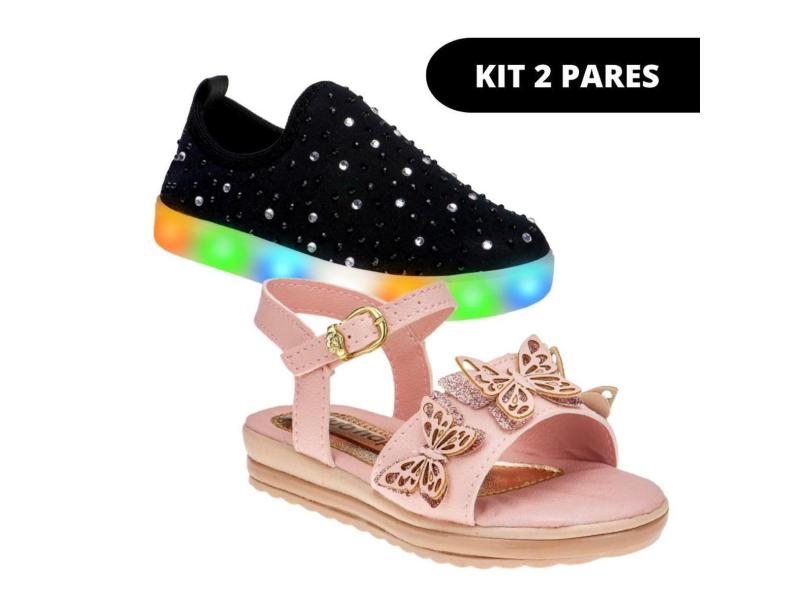 O menor preço encontrado no Brasil para Kit 2 Sapatilha Tênis Infantil Sapato Feminino Menina Escolar-Feminino atualmente é R$ 243,78.
