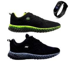 Kit 2 Tênis Asc GT-3 Para Caminhada Academia + Relógio Esportivo Masculino-Feminino