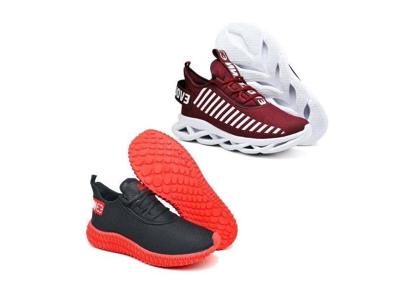 Kit 2 Tênis Caminhada Respiravel Confortavel Ultra Leve Bordô - Evolte