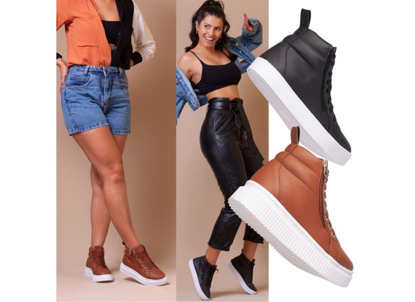 Kit 2 Tênis Cano Longo: Um Preto Clássico Para Um Visual Urbano E Um Caramelo Plataforma.