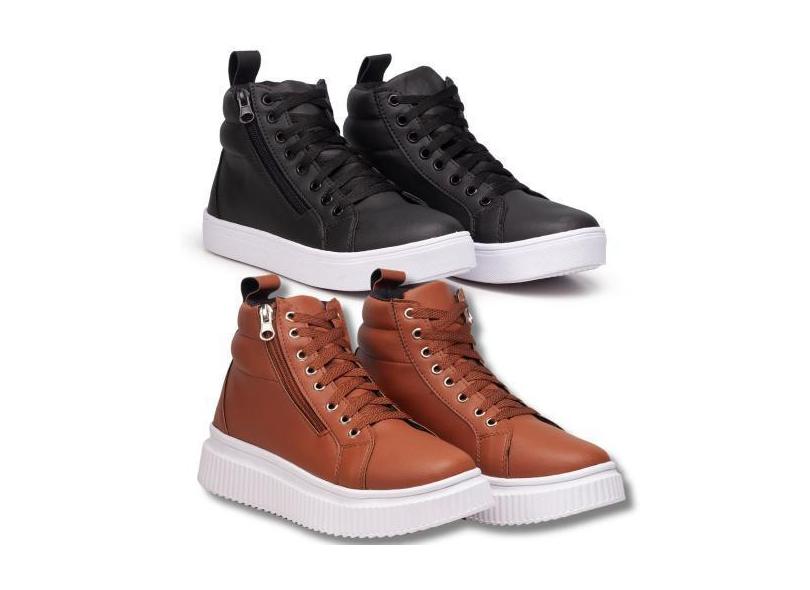 Kit 2 Tênis Cano Longo: Um Preto E Um Caramelo Plataforma. - Fierre, 3