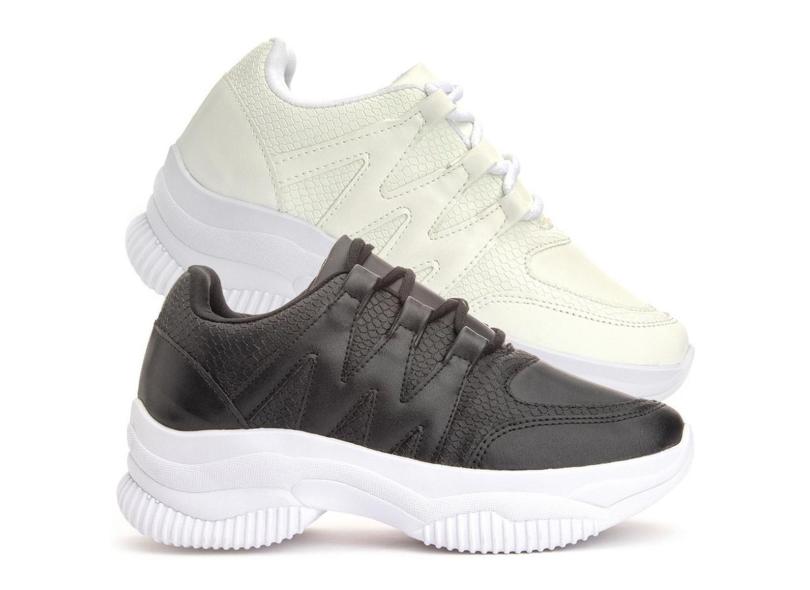 Kit 2 Tênis Chunky Dad Sneakers Feminino Casual Sapatore e Branco-Feminino