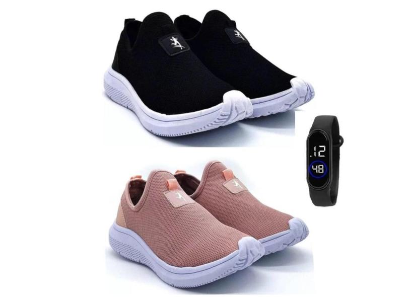 Kit 2 Tênis Corrida Esportivo Ultraleve + Relógio Feminino-Feminino