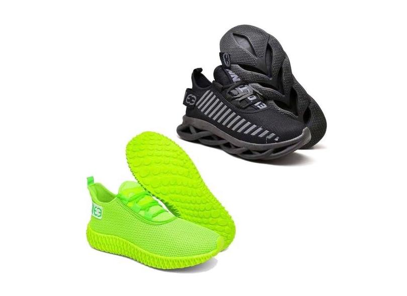 Kit 2 tênis Esportivo Trança + Colmeia Black e Verde 34