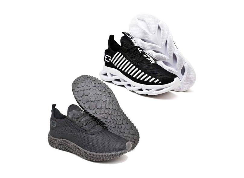 Kit 2 tênis Esportivo Trança + Colmeia Preto Branco e Black 43