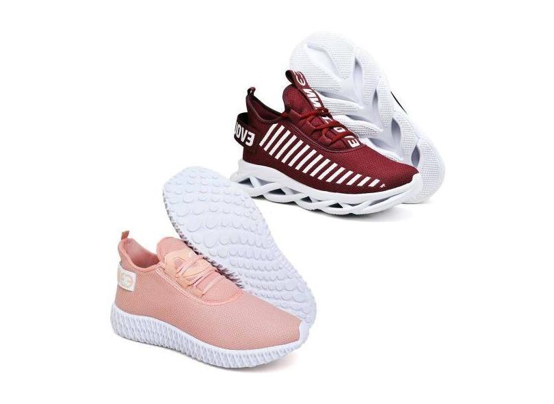 Kit 2 Tênis Feminino Evoltenn Easy Modelos Diferentes Alto/ Nude, Alto