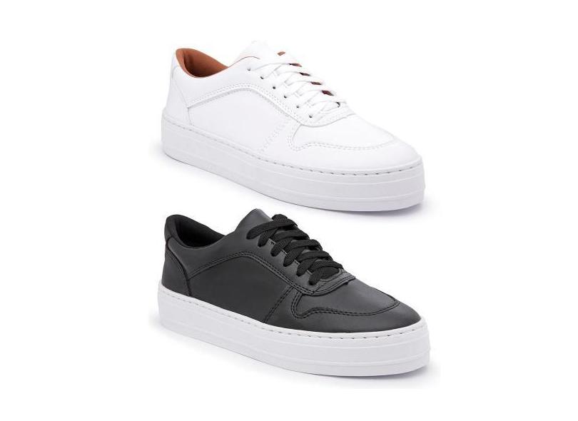 Kit 2 Tênis Feminino Flatform Cadarço Moderno Conforto - Tenehi, Branc