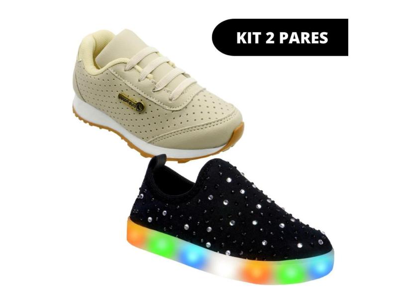 O menor preço encontrado no Brasil para Kit 2 Tênis Led Infanti de Menina Escolar-Feminino atualmente é R$ 254,65.
