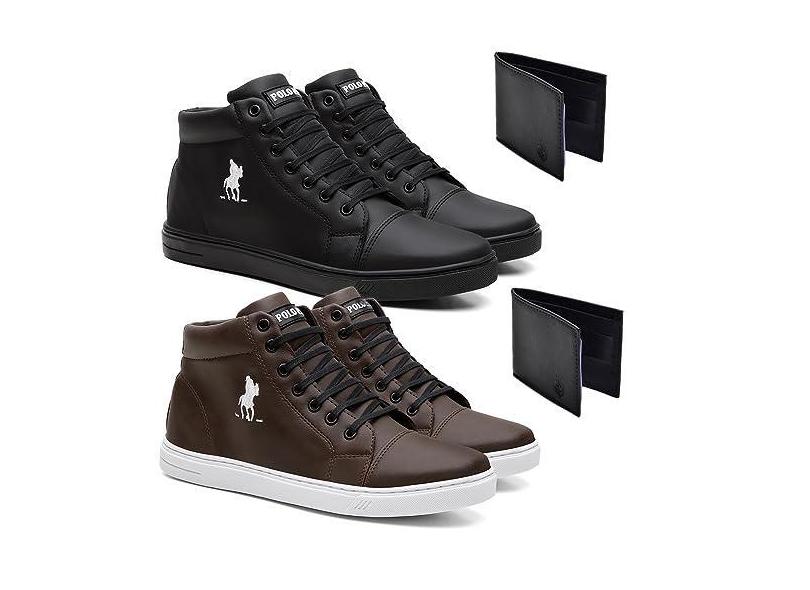 Kit 2 Tênis Masculino Botinha Skate Liso Casual 2 Carteiras Marrom