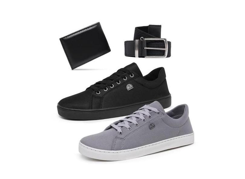 O menor preço encontrado no Brasil para Kit 2 Tênis Masculino Casual + Cinto + Carteira Social - Bless Acessór atualmente é R$ 109,65.
