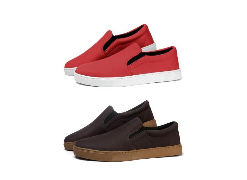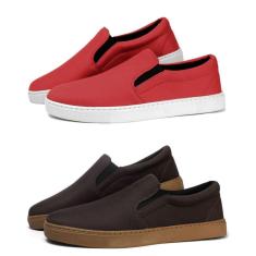Kit 2 Tênis Slip On Four Season Com Elástico E Sola Borracha Reta