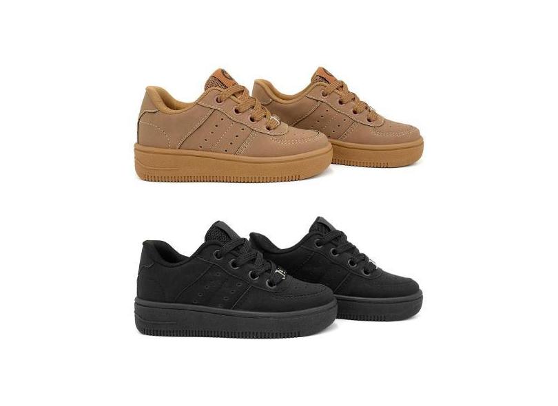 Kit 2 Tênis Street Ollie Infantil Kings Menino Conforto, Camel, Preto,