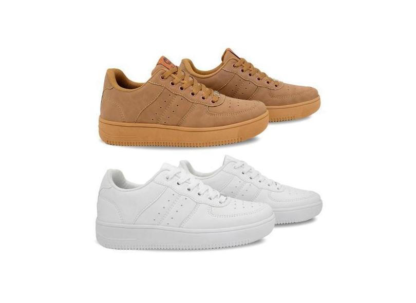 Kit 2 Tênis Street Ollie Juvenil Kings Menino Conforto, Camel, Branco,