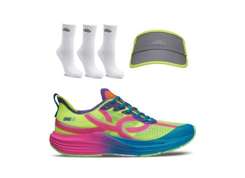 Kit 3 Meias, 1 Tênis Corre 3 E 1 Viseira Runner Olympikus