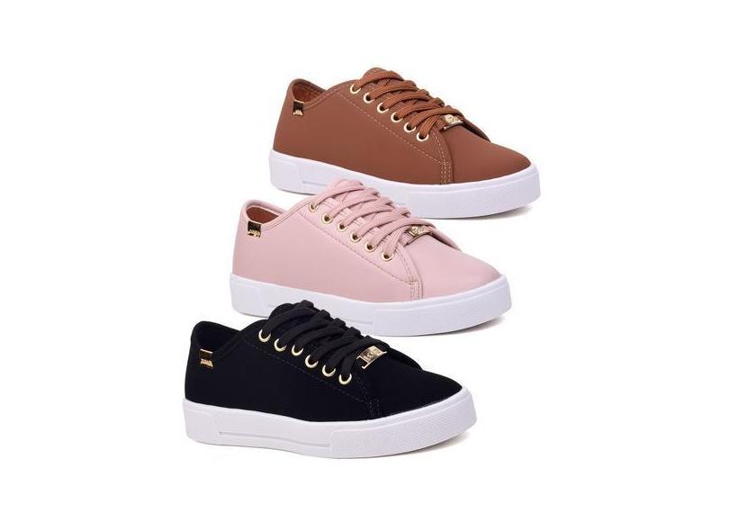 Kit 3 Pares Tenis Casual Feminino Sola Alta Flatform Básico - Leila So