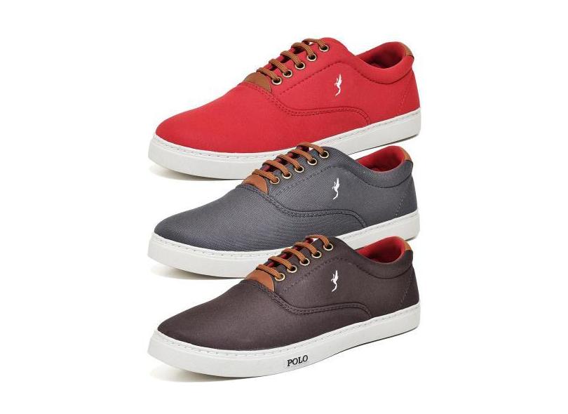 O menor preço encontrado no Brasil para Kit 3 Pares Tênis Casual Masculino Polo Blu Conforto Macio, 42, Vermel atualmente é R$ 213,66.