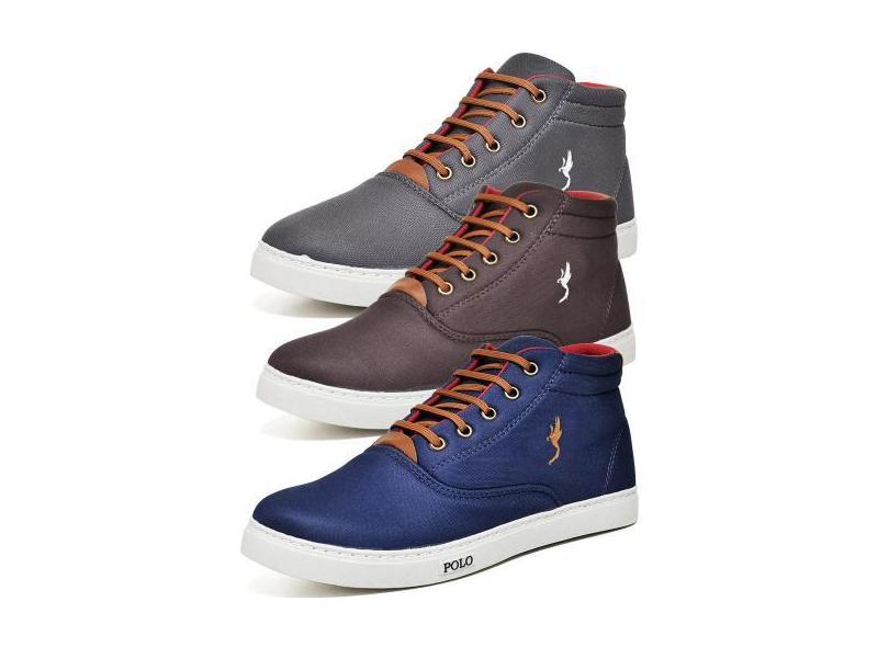 O menor preço encontrado no Brasil para Kit 3 Tênis Casual Masculino Cano Alto Confortável Macio - Polo Blu, 3 atualmente é R$ 206,31.